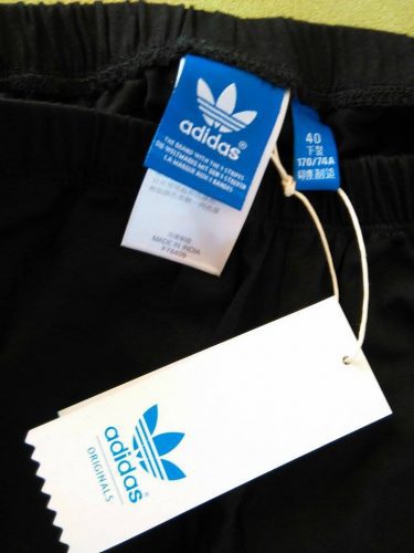 Adidas leginy na cvičení, které se úspěšně tváří jako skutečný originál. Materiál 94% bavlna, 6% elastan. Objednala jsem velikost XL a odpovídá to velikosti UK12, DE 38. Jsou dost dlouhé, měřím 175cm a jsou na délku úplně akorát. Lidem pod 170cm bych je nedoporučovala, budou je mít dole nařasené. Doporučuji je. Jsem spokojená. Cena sice nebyla nijak závratně nízká, ale kvalita výrobku je výborná.