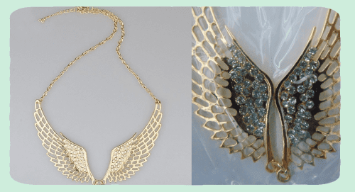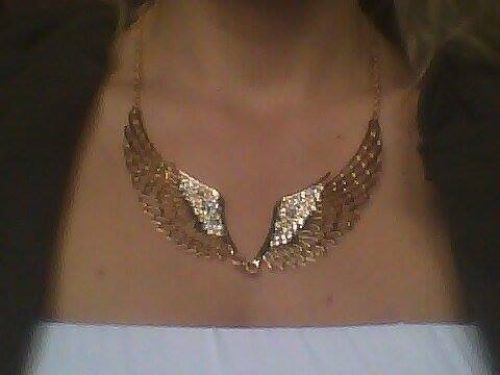 prodejce: ***** sledování balíčku: ano, celý proces [sledování i po ČR] materiál: **** velikost: ***** barva: **** cena: ***** Když jsem hledala na přání své sestry tato andělská křídla, divila jsem se, že jich na AE není moc. A když už byly, nebyly zrovna za výhodnou cenu, proto jsem se rozhodla, že je objednám od tohoto prodejce i za cenu toho, že si diktuje minimální hodnotu objednávky (10 dolarů). Prodejce v průběhu procesu nereagoval, nicméně zásilku zaslal superrychle a o to rychleji mi byla doručena, takže věřím, že i kdyby se vyskytl problém, s ním by se vše dalo řešit. A co křídla? Již podle promo fotek prodejce se dalo očekávat, že to nebude žádná velká hitparáda. Zlato je spíše žluté, což je ale u levnějších šperků z AE časté, a kamínky úplně nesedí ve svých dírkách. To ale při běžném nošení není vidět, chce se na to pořádně zaměřit. Jinak jsou pevná a pěkná, na krku vypadají skvěle. Za mě doporučuji prodejce a dokonce i ta křídla, pokud tedy nejste úplně nároční. :)