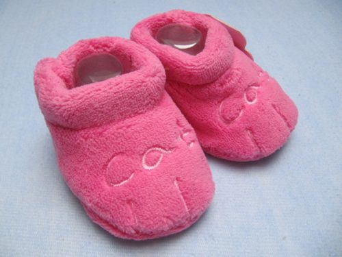 Bačkůrky jsem objednávala jako dárky pro kamarádky - novopečené maminky, proto nejsou rozbalené ani testované. Podrážka je bílá s gumovými protiskluzovými tečkami. Délka botiček 12 cm. Líbil se mi jejich vzhled i cena, objednala jsem je. Prodejce odeslal po 5ti dnech od objednání, dostala jsem sledovací číslo. Když se však číslo ani 11tý den neobjevilo ve sledování na 17track.net, napsala jsem prodejci, jestli je číslo správné. Prodejce mne však svou odpovědí mile překvapil, napsal, že se moc omlouvá, zásilka se ztratila a jako omluvu si mohu vybrat další dvoje jiné bačkůrky pro mimi! Poslal mi odkaz, vybrala jsem si barvy a opravdu mi přišly 4x bačkůrky. Prodejce tedy mohu jen doporučit! Vzhledem k tomu, že nové bačkůrky jsem dostala bez objednávky, nebudu na ně dělat samostatnou recenzi: http://www.aliexpress.com/item/Free-Shipping-Candy-colore-First-Walkers-Newborn-Paw-shape-Warm-shoes-Baby-cotton-shoes-Baby-indoor/1608770916.html Tyto bačkůrky jsou ze stejného chlupatého materiálu jako ty první, ale na boku jsou na suché zipy. Bačkůrka lze otevřít až k podrážce, tak se velmi snadno nasazují i přes overal. Vevnitř je bavlna, zvenku jsou celé chlupaté, včetně podrážky. Na přední straně mají vyšitý nápis Cat a tři čárky pro vzhled tlapky. Délka 11 cm.