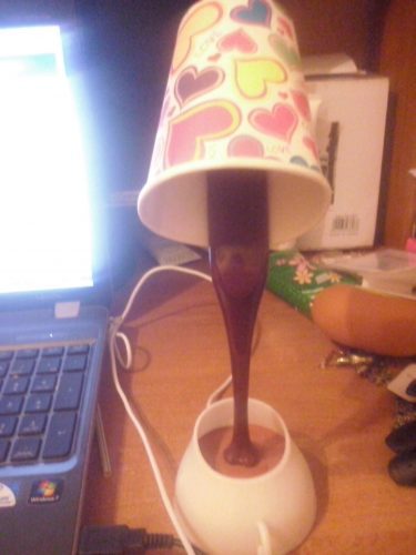 Lampa v tvare vylievajúcej sa kávy
