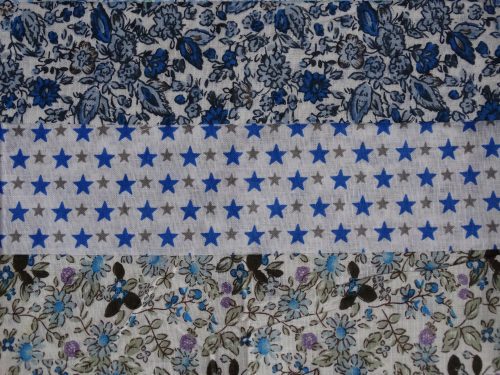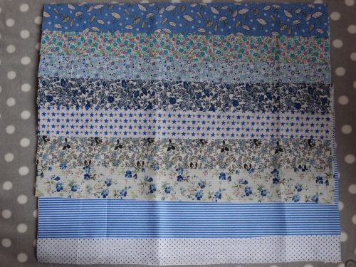 Balíček 9 sladěných druhů látek, rozměr 50x50cm, čtverce ustřiženy rovně, barvy a motivy odpovídají fotkám výrobce, látka je příjemná, trochu pruží, ale nebude to 100% bavlna - látka není tak silná, ale např. na polštářek pro děti nebo kapsář k posteli je to super