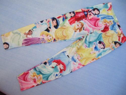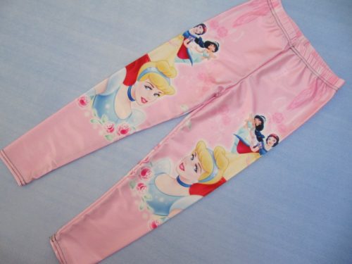 Lesklé silnější legíny s 3D potiskem. Jsou polyesterové + elastan. Vybrala jsem velikost 7 - přišla vel. M, odpovídá 4-5 rokům. Délka 64 cm, pas v klidu 2x 24 cm, roztáhnutý na max. 2x 40 cm.