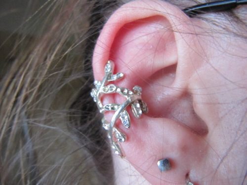 Krásná levná náušnice, která velmi hezky ozdobí a připoutá pozornost. Mám ji ve stříbrné barvě, ale prodává se i ve zlaté. Je vyrobena z pevného kovu, nelze jen tak ohnout. Osázena bílými asi skleněnými kamínky. Náušnice mi při nandavání již několikrát spadla a některé kamínky z ní vypadly, ale není to moc vidět, zůstanou po nich stříbrné jamky. Náušnice je vytvarována přesně na ucho, netlačí ani nepadá, ale nedoporučuji ji na spaní, to tlačí.
