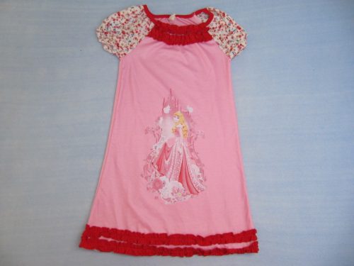 Prodávané jako šaty na holčičky, ale je to spíše noční košile. Růžová část je z pružné bavlny, květované rukávy jsou z plátna. Potisk lehce rozmazaný, ale i tak vypadá hezky. Ani častým praním se nijak nezměnil. Příjemná noční košile. Koupena vel. 5 - přišla vel. 110, odpovídá tak věku 3-5 let. Délka je 60 cm, přes hrudník 2x 29 cm, dolní okraj 2x 39 cm.