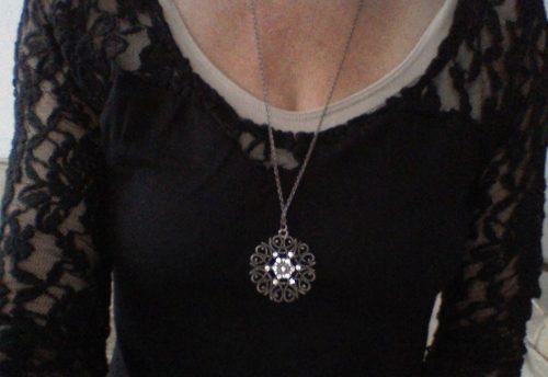 Řetízek je 35 cm dlouhý, nemáu zavírací zakončení ( je jednolitý, takže se musí přetahovat přes hlavu, ale je dost dlouhý takže to moc nevadí. Na obrázku u prodejce vypadá zajímavěji, je dost tmavý, jinak jsem s ním docela spokojená.Působí starobyle.