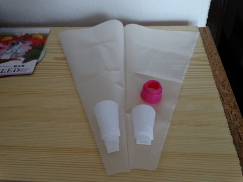 - Sáček na zdobení dortů, cupcaků apod. dvoubarevným krémem - Sáček je ze silnějšího siliconu (něčeho umělého) a je rozdělený na dva - špička je z umělé hmoty - růžový kroužek se odšroubuje, špičky se vloží do sáčků a zase se našroubuje kroužek - Ještě jsem nezkoušela, ale vypadá to kvalitně