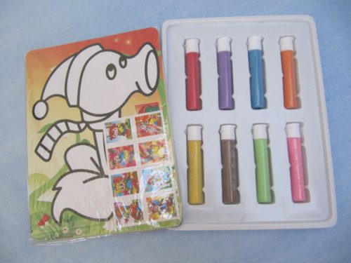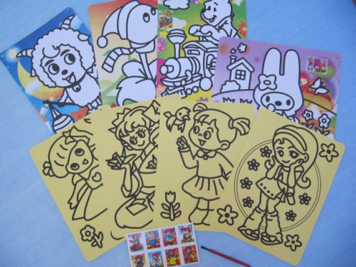 Sada s 8mi barvami písku a 8mi obrázky k posypu. Obrázky jsou na tužším papíru. 4 obrázky mají barevné pozadí a odlepují se jen části hlavních figurek, 4 obrázky se odlepují celé. Vybarvuje se dle přiložených mini obrázků - samolepek. V sadě je také malý štětec na snadnější rozprostření písku.Vše je zabaleno v kufříku pro snadné přenášení. Kufřík byl několikrát obalen bublinkovou folií, takže přišel téměř nepoškozený. Velikost 22 cm x 16,5 cm.