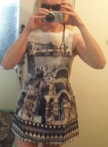 Nejprve jsem se lekla toho, jak jsou šaty krátké, ale nakonec jsme si na krátkou délku zvykla.Objednala jsem L, což odpovídá české M. Látka je pevná, potisk kvalitní, dle nabídky. Látka nezapáchá. Rozměry:velikost L celková délka šatů - 76 cm pas - 38 cm spodní část šatů - 62 cm Šty dorazili za 28 dnů.