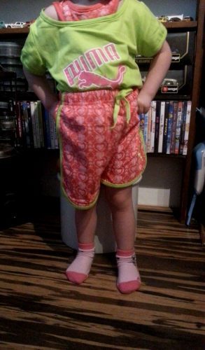 materiál bavlna, obj vel 5 na 2 letou slečnu. Souprava je jí velká tričko - pas 32 cm - délka 45 cm šortky pas 21 cm ( našitá guma) - délka 28 cm