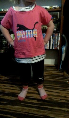 materiál bavlna, objednala jsem vel 5 na dítě 2 roky. Je velká, ale kdo se v těch vel má vyznat :D No raději větší než menší tričko - délka 40 cm - šířka 30 cm leginy - pas 26 cm ( v pase je guma) délka 40 cm