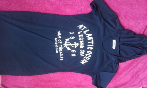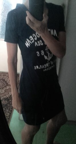 Sportovní šaty tmavomodré barvy s kvalitním potiskem v námořnickém stylu, příjemný materiál. Objednávala jsem raději XL, podle fotky s hubenou asijskou modelkou,a vyplatilo se, že jsem si vzala XL, jež odpovídá naší S/M. Opravdu si objednávejte až o dvě čísla větší šaty, jinak vám budou malé. Jsem s nimi spokojená, odpovídají nabídce. Cena 5.95 US dolarů.