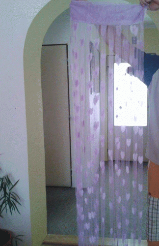 Balení dvou světle fialových závěsů/záclon se srdíčky. Rozměr 1 kusu: 1mx2m Závěsy přišly hezky zabalené a opravdu rychle. To jsem nečekala. Prodejce byl milý a dobře komunikoval. Závěsy jsou dělané z silnějších nitek a poté je z nich uháčkované srdíčko - viz foto. Barva je moc pěkná, na fotce prodejce vypadá tmavší - reálná barva viz. mé foto. Jsou moc pěkné, kvalitní. Občas se zacuchají, ale to je samozřejmé. Při koupi volila bych raději 2 kusu, při zvlnění to na okně vypadá lépe. Jeden kus by byl málo (záleží na velikosti okna)