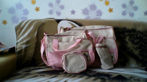Nedávno jsem si objednala tašku na kočár,bohužel barva neodpovídá,chtěla jsem hnědou a přišla mi růžová.Materiál je příjemný,k tomu je přebalovací podložka,menší taška,větší taška,taštička na příkrmy a taštička na flašku.Taška se mi líbí a těším se až ji budu mít na kočárku,ale to si počkám až do konce dubna.