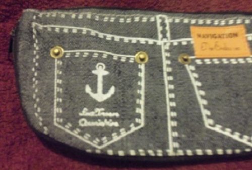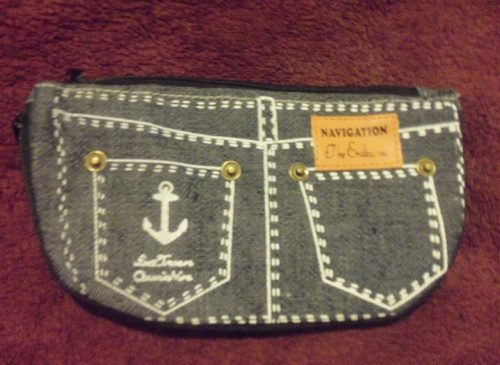 Taštička (případně jako penálek), džínová se dvěma zipy. barva tmavě-modrá. Zip má i dole, pak lépe stojí. Je roztomilá, mám do práce na drobnosti, šminky, tužky ... Odpovídá obrázku. Rozměry: šířka taštičky - 11 cm délka nahoře u vrchního zipu - 19 cm