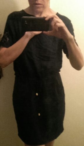 Tmavomodré šaty z lehké látky, sice přišly zabalené pomačkané, ale krásně se dají vyžehlit a vypadají pak moc pěkně. Přišly mi asi za 31 dnů.Mají volný střih, šňůrkou se dá utáhnout a přizpůsobit postavě. Cena dobrá - 9,89 dolarů, objednávala jsme velikost L, což odpovídá české M. Z mojí strany spokojenost, určitě doporučuji ostatním.