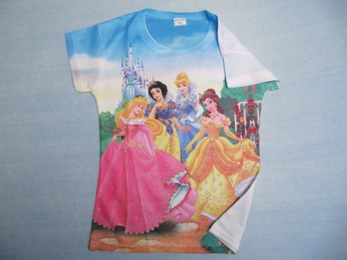 Polyesterové tričko s 3D potiskem. Obrázek je velmi ostrý, vypadá velmi hezky. Zadní část trička je bílá. Objednána vel. 6, přišla vel. XXL, odpovídá 5-6 let. Tričko je dost pružné a dostatečně dlouhé. Délka 45 cm, šířka v klidu 2x 29 cm, roztáhnuté až 2x 40 cm, délka rukávu od krku 16 cm, od švu 7 cm.