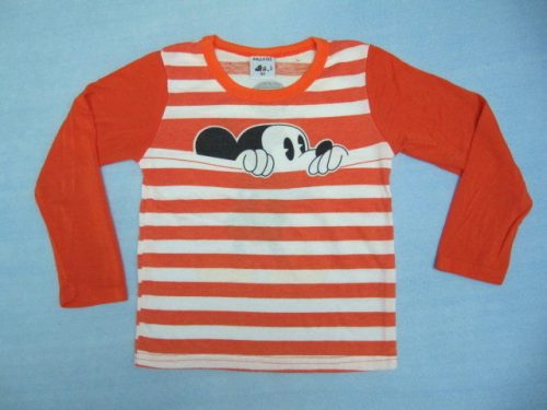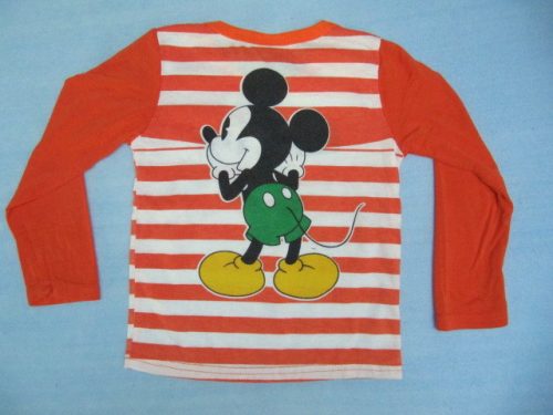 Tričko má proužkovanou část ze slabé bavlny, barevný potisk je stejný jako proužky, takže se neoloupe. Rukávy jsou z bavlny + elastanu. Kupovala jsem vel. 2T pro 2,5 letého kluka, nosí vel. 80/86. Přišla vel. 90 a odpovídá to naší 86/92. Rukávy mu překrývají zápěstí, tričko je trochu delší, což je dobře, nevylézá mu z kalhot. Délka trička 36 cm, šířka 2x 27 cm, rukáv od krku 37 cm, od ramenního švu 31 cm.