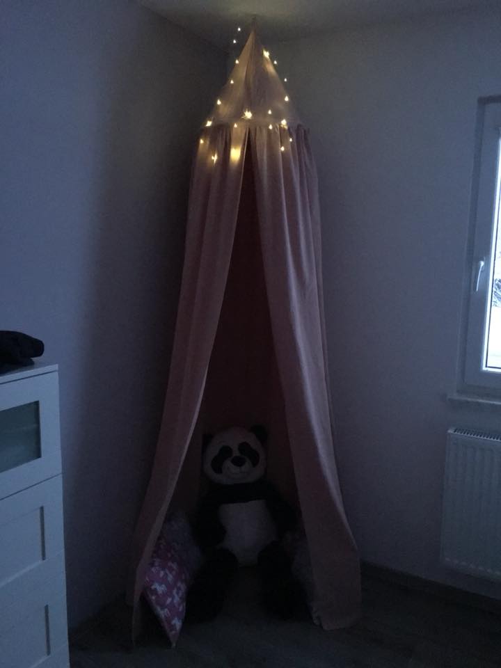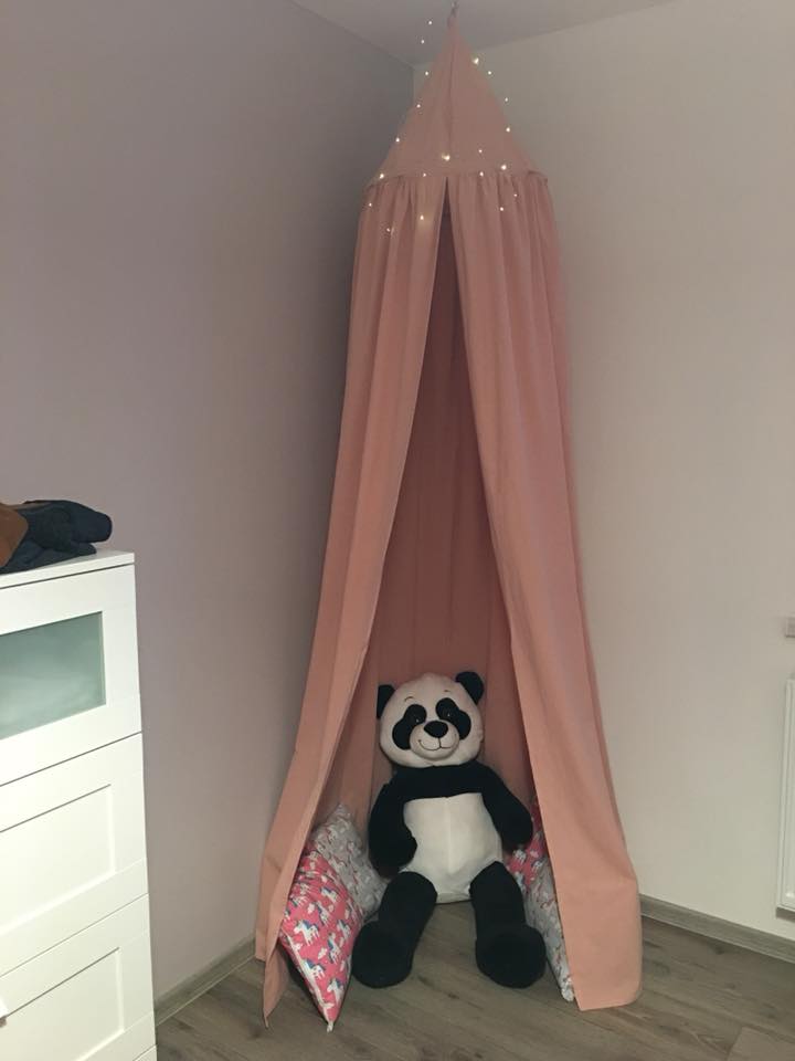 Baldachýn pro malou… chtěl vyžehlit, ikdyz byl složený a povesili jsme na…
