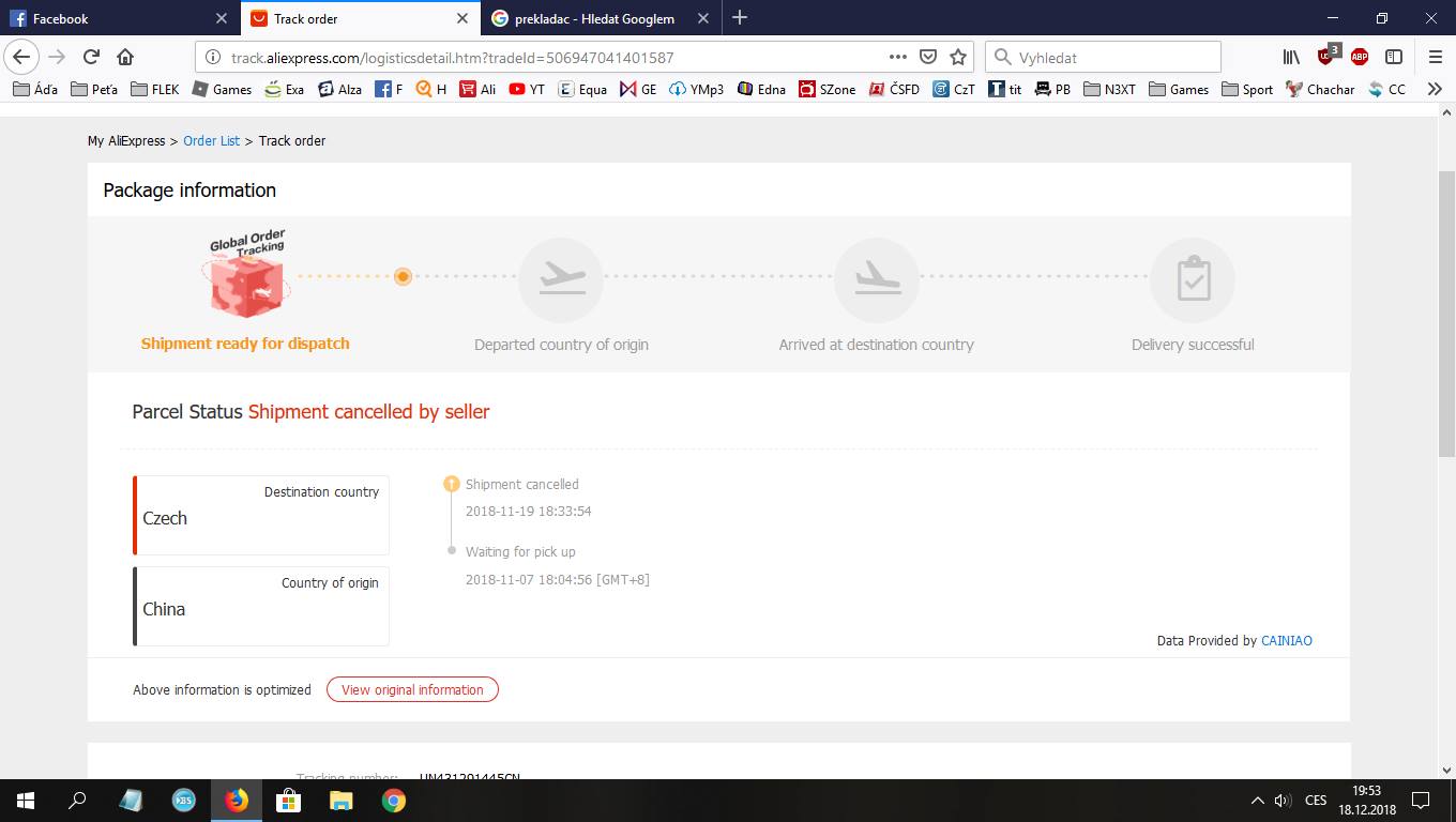 Dobry vecer, nevite proc mam u objednavky, ze byla zasilka zrusena? Jeste jsem…