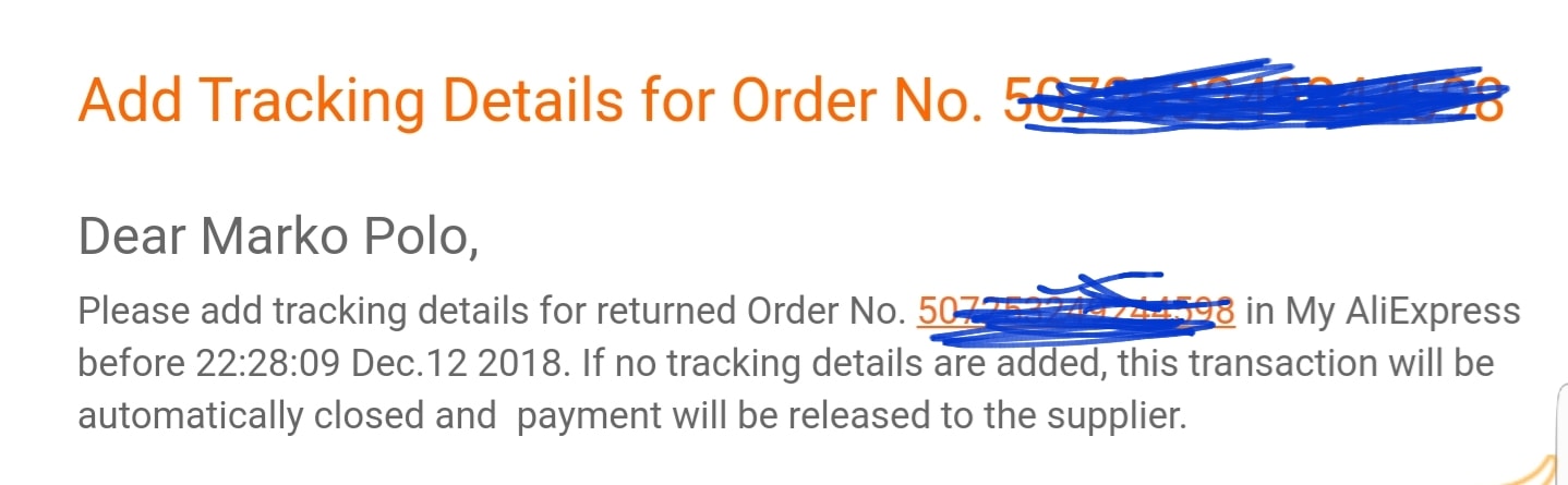hoj proc mi porad chodi tyto emaily ? zbozi poslano zpet do chiny a sledovaci…