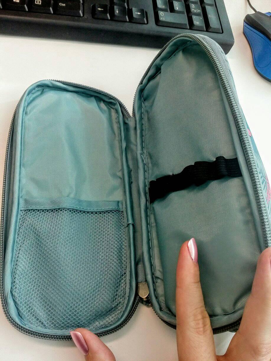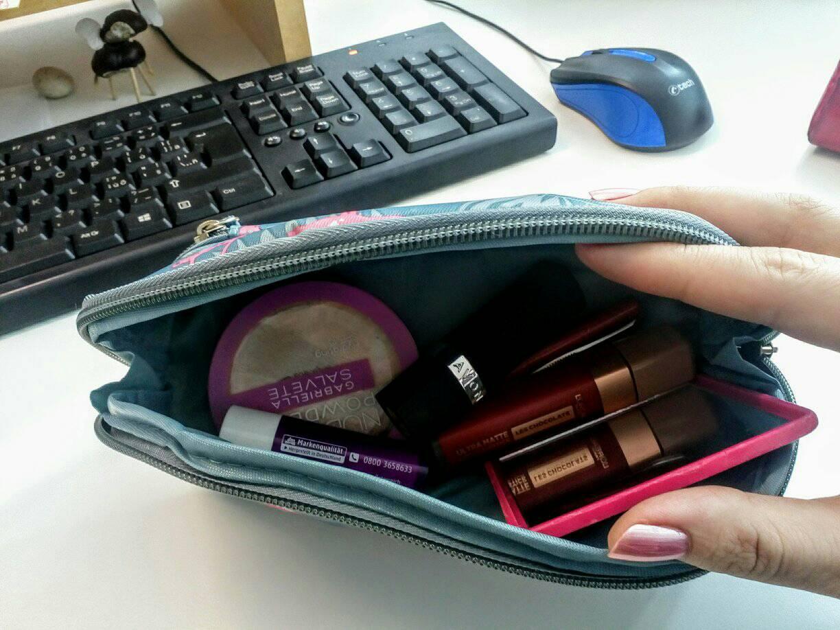 Pouzdro na šminky, vespod místo na štětce, pro mě na propisky. Je trochu větší…